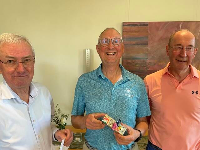 Een heerlijke golfdag voor de 22 "Thuisblijvers" , samen met de 35 deelnemers op Mühlenhof dus 57 heren actief op de Herendag! Als afsluiting van de nazit in een zonnetje op het open terras natuurlijk toch een prijsuitreiking.